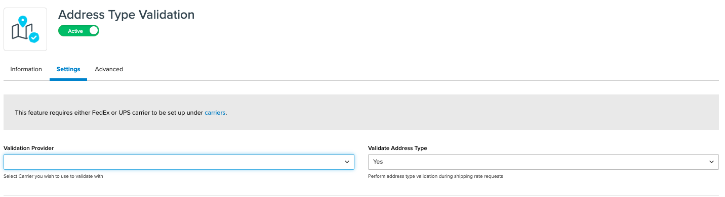 To utilize Address Validation, add UPS, FedEx, or Loqate to your account.