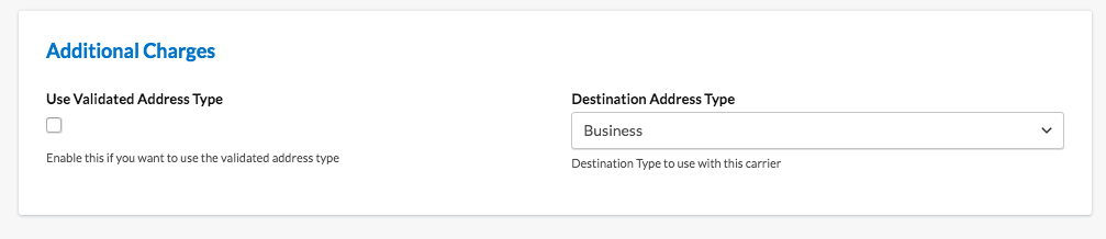 - In the Optional panel, scroll to Additional Charges and check Use Validated Address Type.