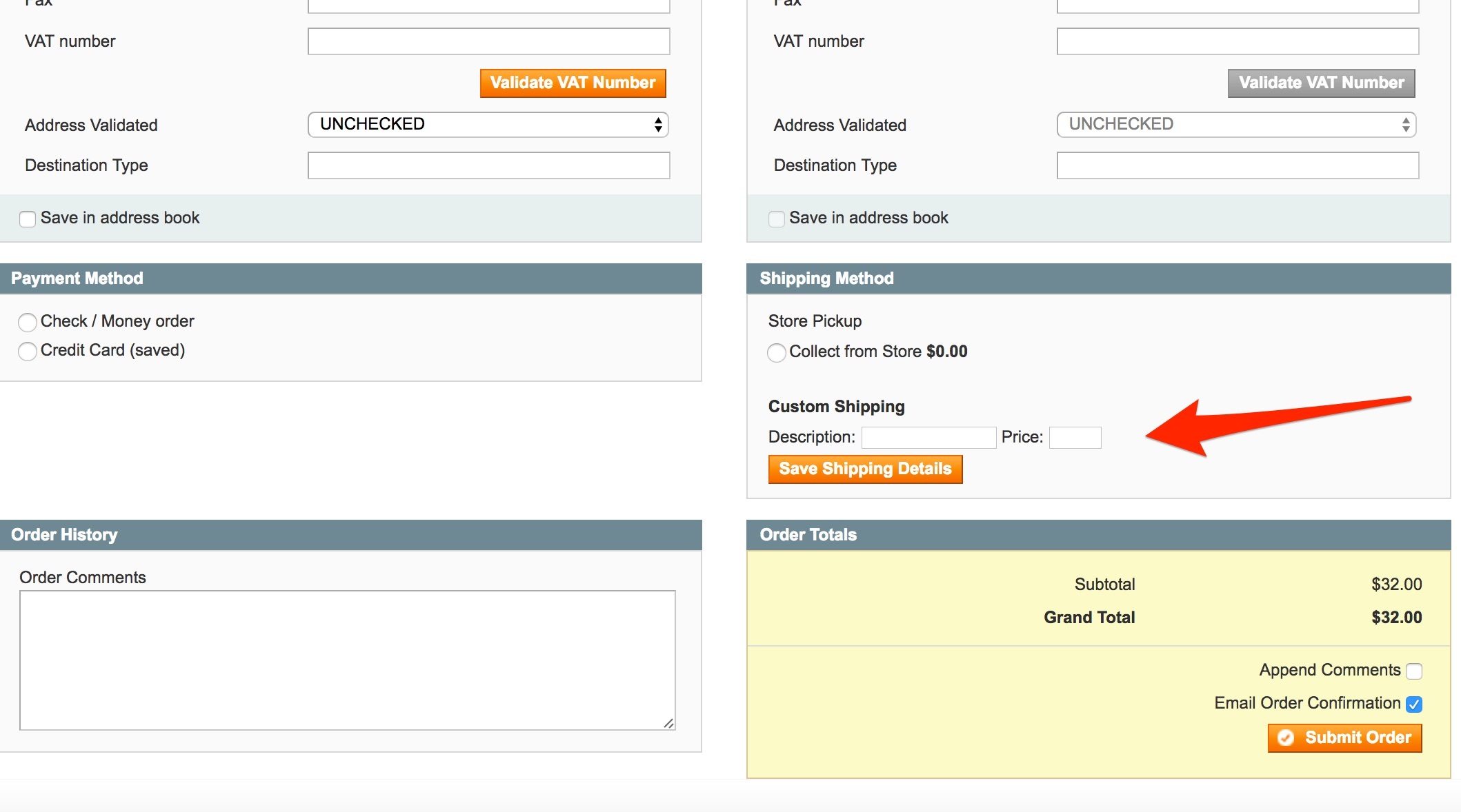 - For Magento 1: Click either Save Shipping Details to update the order summary before placing the order or click the Submit Order button to submit.