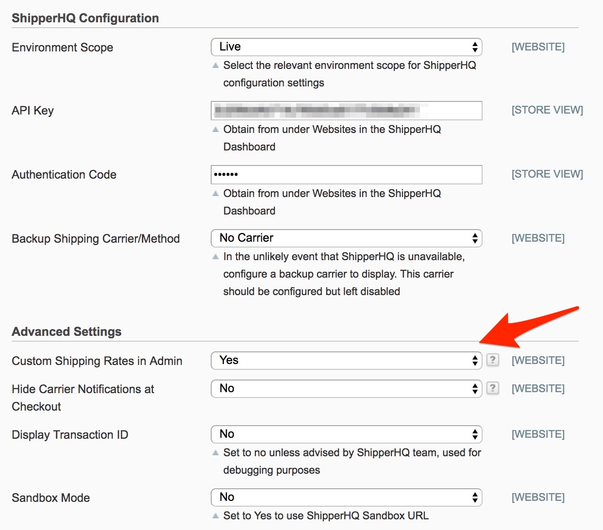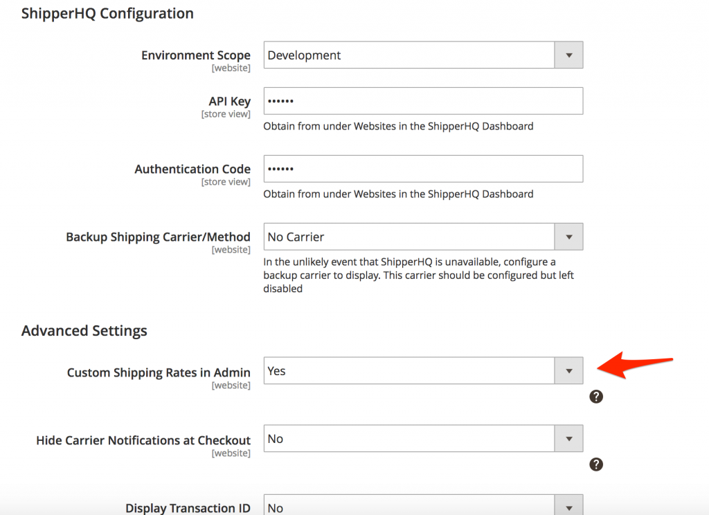 - Enable the setting under System > Configuration > Shipping Methods > ShipperHQ > Custom Shipping Rates in Admin. Then, save the configuration.