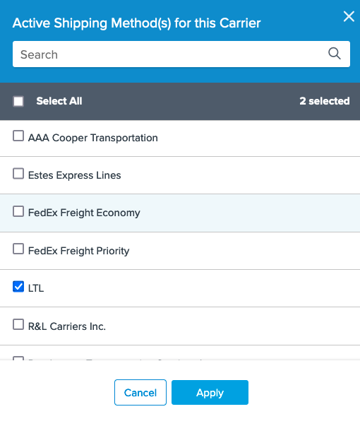 To display specific carriers instead of the general LTL method, you can replace it with options like: