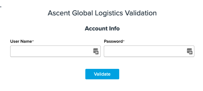 Make sure you have your Ascent Global Logistics username, password, and API Key ready. If you need an account or your API Key, contact Ascent Global Logistics for assistance.