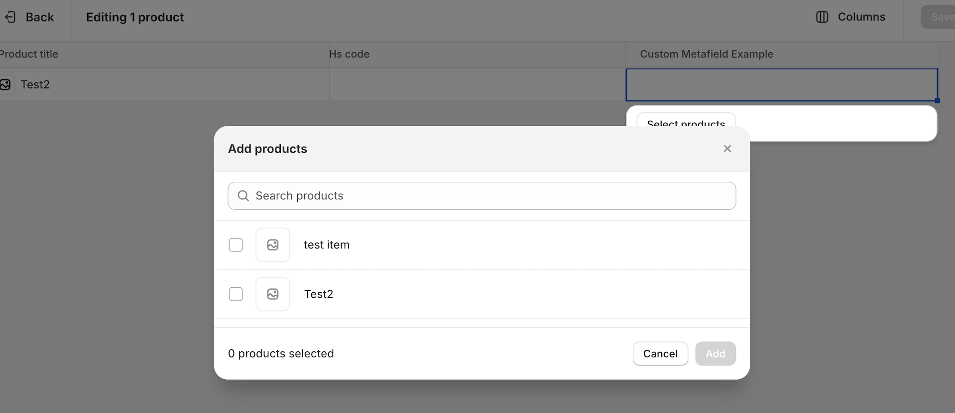 - Navigate to your products and select one to update. Initially, the new metafield won’t be visible.