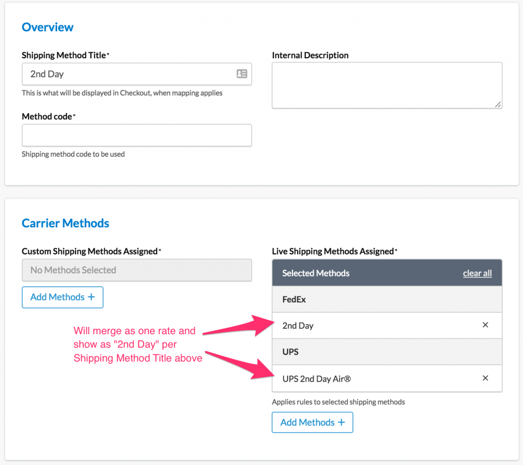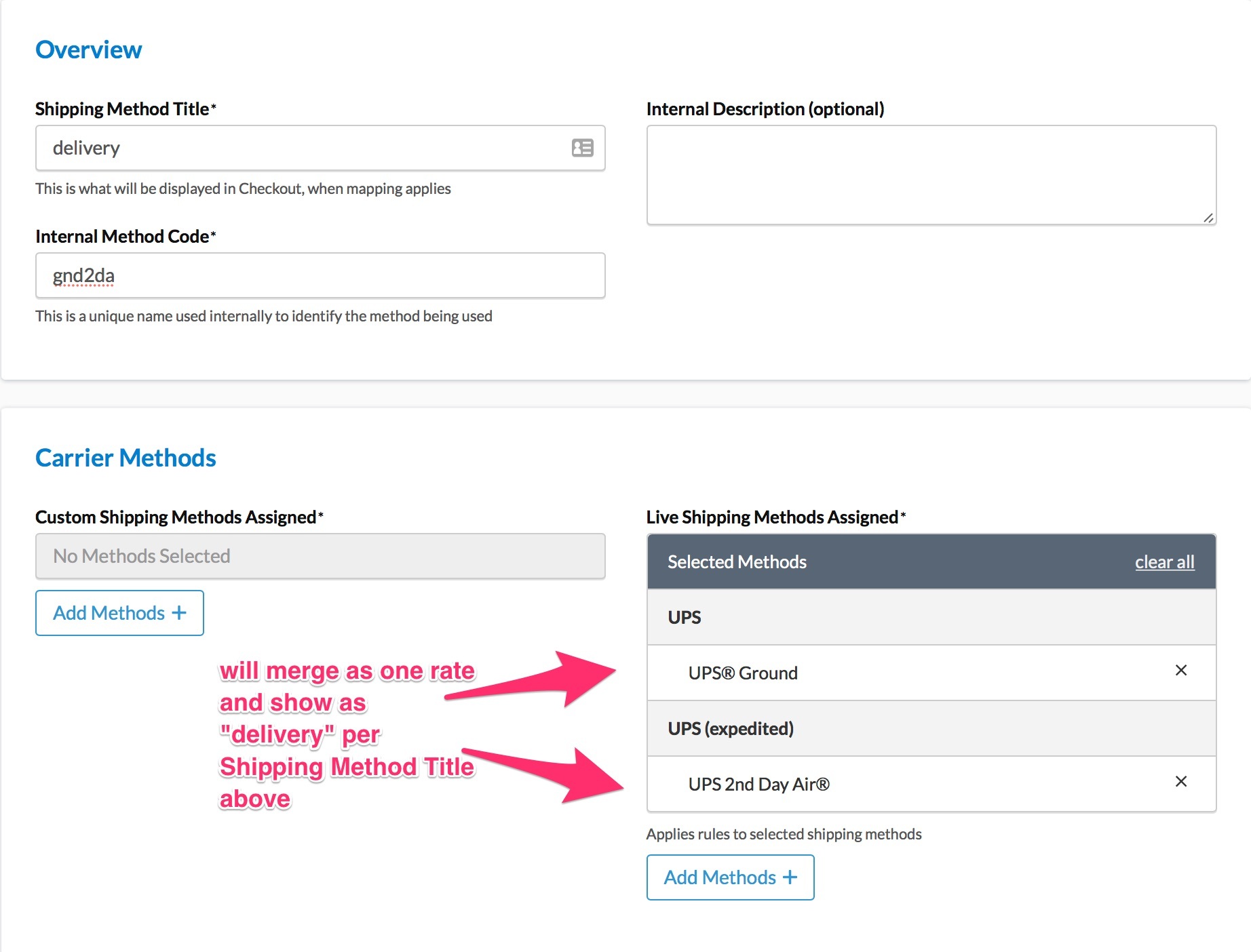 💡 Rate Shopping: The Carrier Merge Rules page can set up rate shopping to compare rates of various methods and show the cheapest one at checkout. Check out our Rate Shopping guide for more details.
