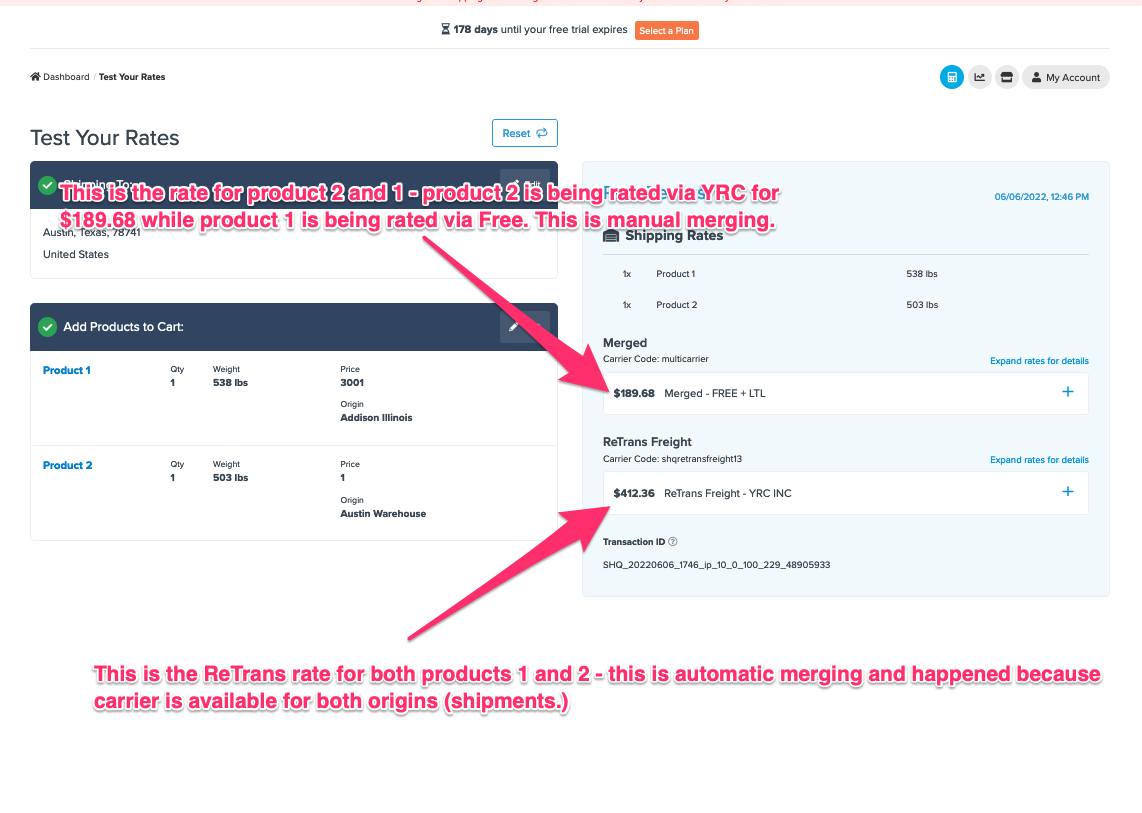 - Verify that at least one shipping method from both Origin A and Origin B tests is included in a Method Merge Rule.