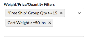 - Surcharging rates for your BULKY shipping group by setting BULKY in the Shipping Group Includes condition