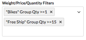 For a rule with these two filters, a cart with only one 70 lb "Bikes" item will NOT trigger the rule: