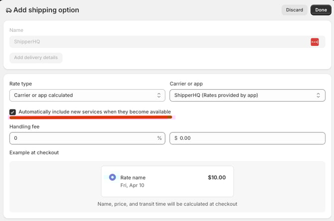 Note: Not all carrier services in ShipperHQ appear in Shipping Profiles. Rates will still return at checkout if "Automatically show new shipping services..." is enabled.