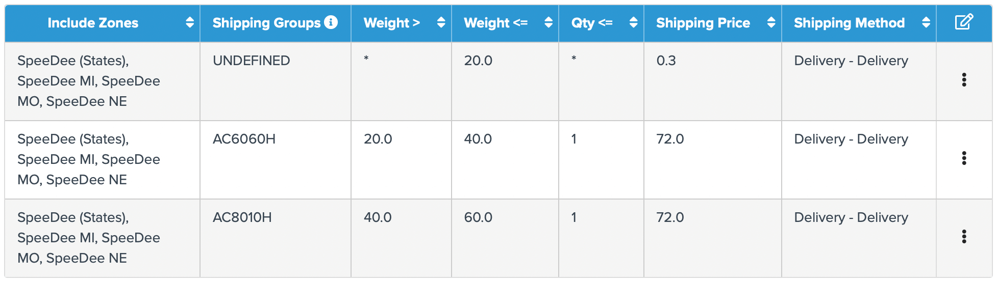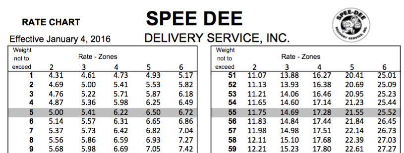 - Request a rate definition spreadsheet or documentation from your carrier. It should clearly state how the shipping prices vary, similar to the example below:
