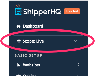 When setting up your account, you configured it under one of these four scopes: 'Development', 'Integration', 'Live', and 'Test'. After testing your store and setting configurations for 'Websites', 'Origins', 'Carriers', and 'Shipping Rules', you may want to make your staging configuration live. Copying the configuration from one scope to another efficiently is key.