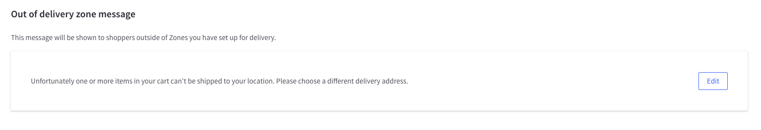 - Scroll to Checkout Shipping Options and find the Out of Delivery Zone Message section.
