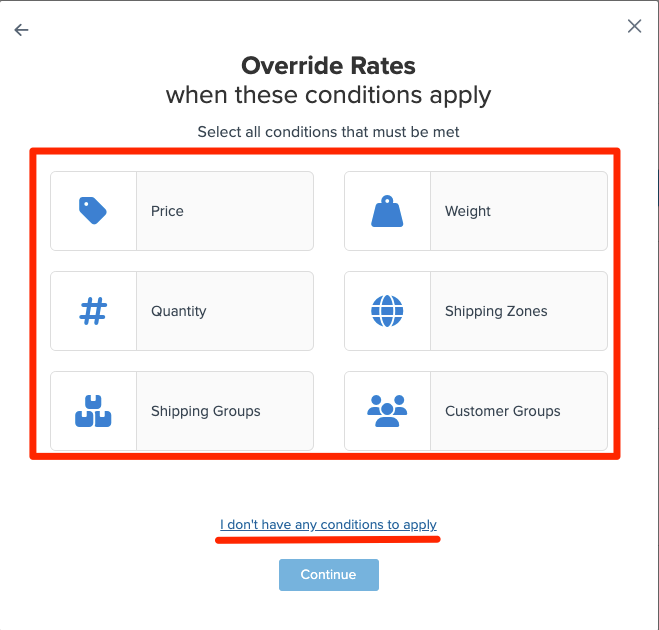 - From the Conditions list, select all applicable conditions or choose "I don't have any conditions to apply" if none are needed.