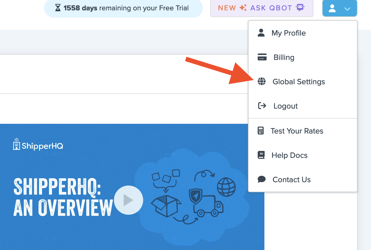 - From the main dashboard, click the icon in the upper right corner to expand the menu and select Global Settings.