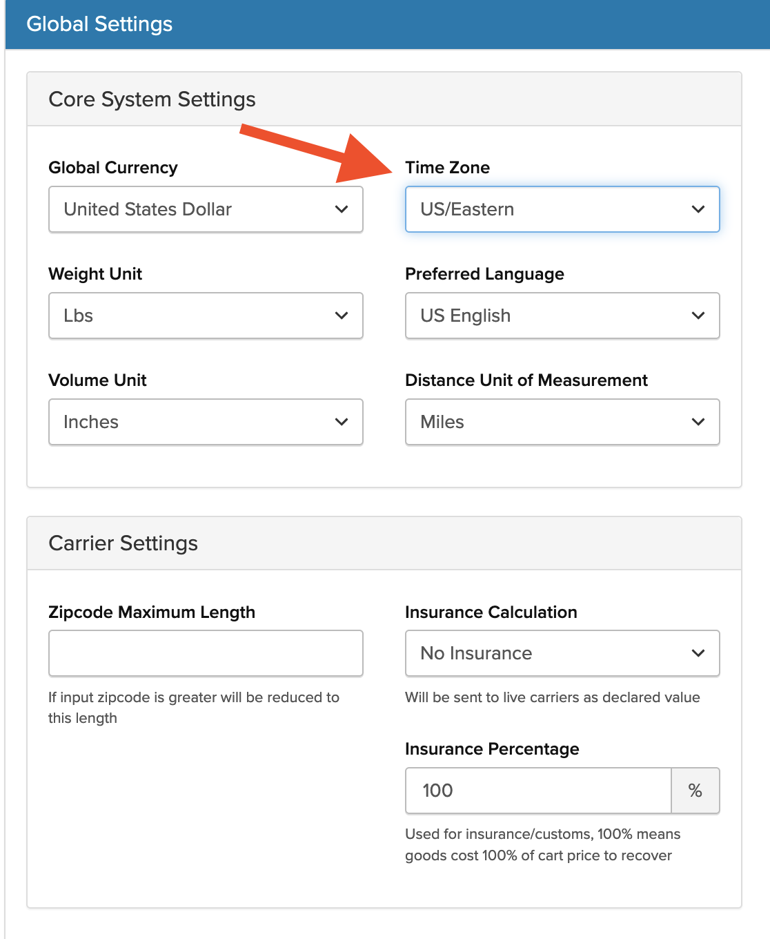 - In the Core System Settings section, set the timezone for your account. Ensure it is correct, then proceed with the setup instructions.
