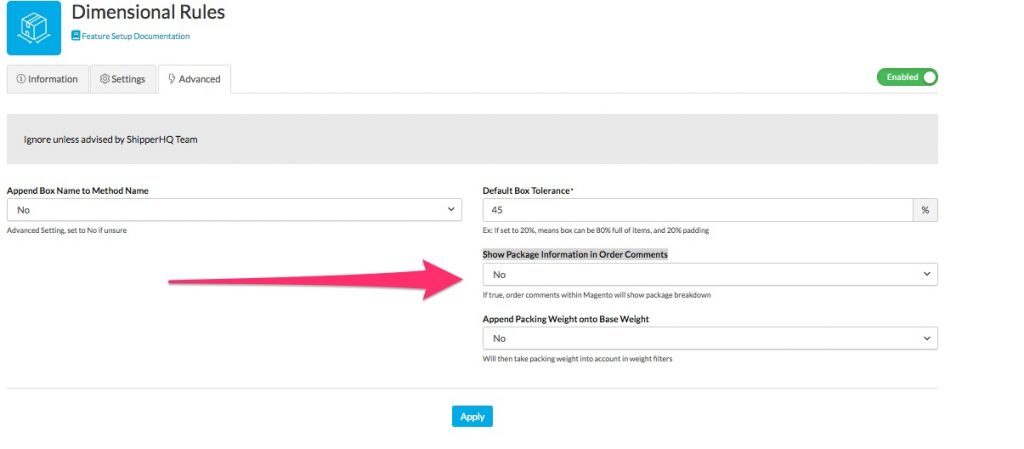 Note: Dimensional Packing must be enabled in ShipperHQ before adjusting this setting.