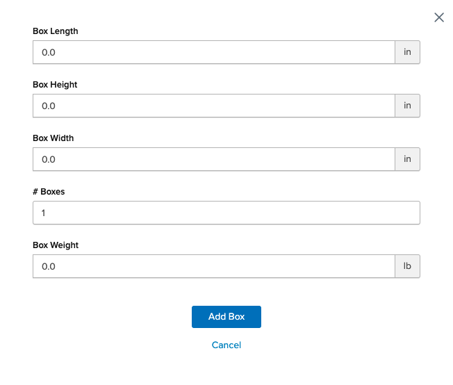 2. In the Basic tab under Pack Via Multiple Boxes, hit Create a Box and configure dimensions, weight, and number of boxes.