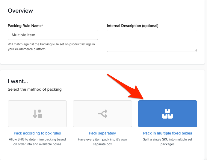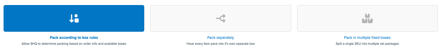 Note: If you're creating a Pack in Multiple Fixed Boxes rule (i.e. splitting a single SKU into multiple set packages) you can skip this step and jump to Pack in Multiple Fixed Boxes.
