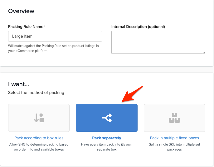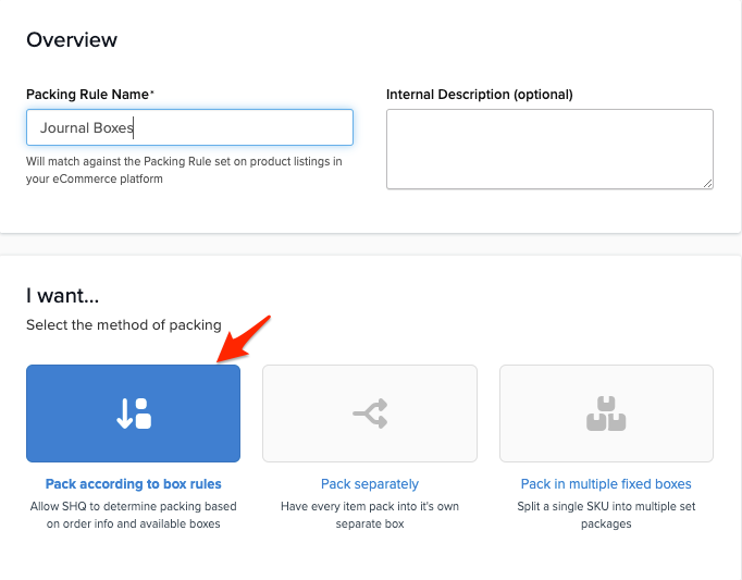 Let's walk through general packing rules set-up and the details of setting up each method. For a broader explanation, see our guides on Dimensional Packing and Box Sizes.