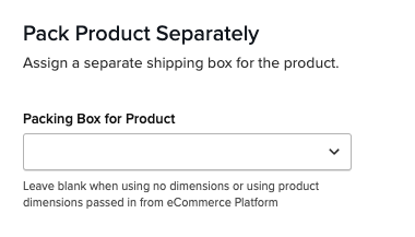 - In the "Pack Product Separately" panel, select a box in the "Packing Box for Product" dropdown. If no box is set, ShipperHQ creates a custom box. Learn more about how ShipperHQ packs in this scenario.