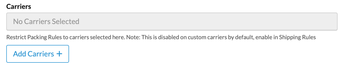 - If you have Packing Rules restricted to specific carriers, Go to Advanced Features > Dimensional Packing > Settings to add your carrier to the list of selected carriers.