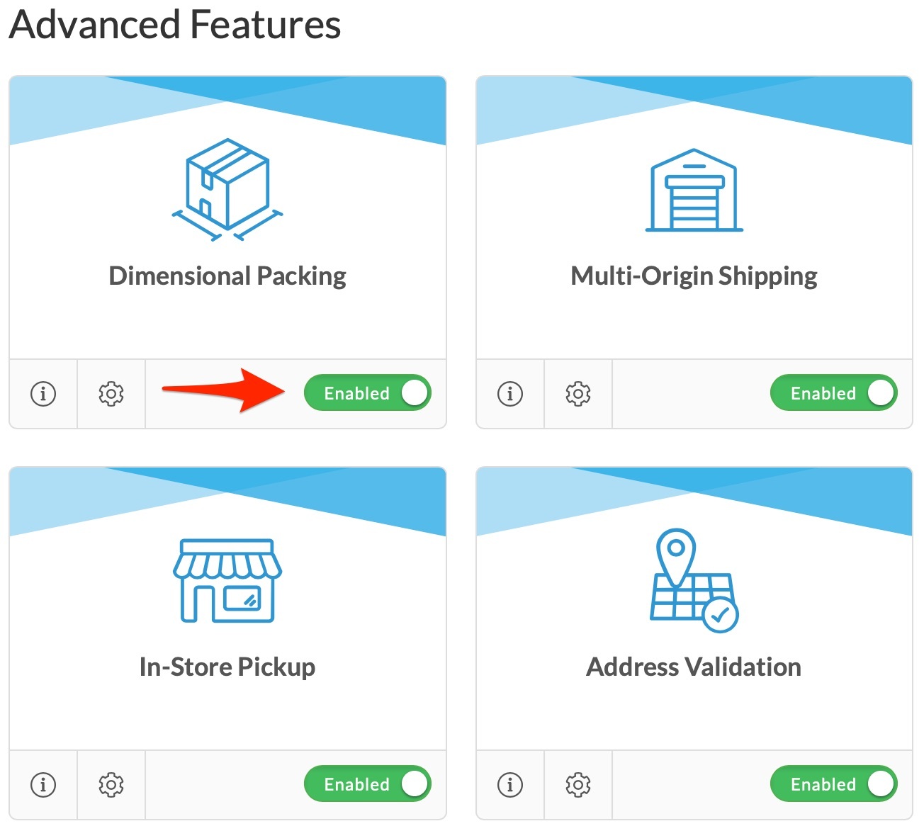 - Ensure Dimensional Packing is enabled in Advanced Features > Dimensional Packing > Enable