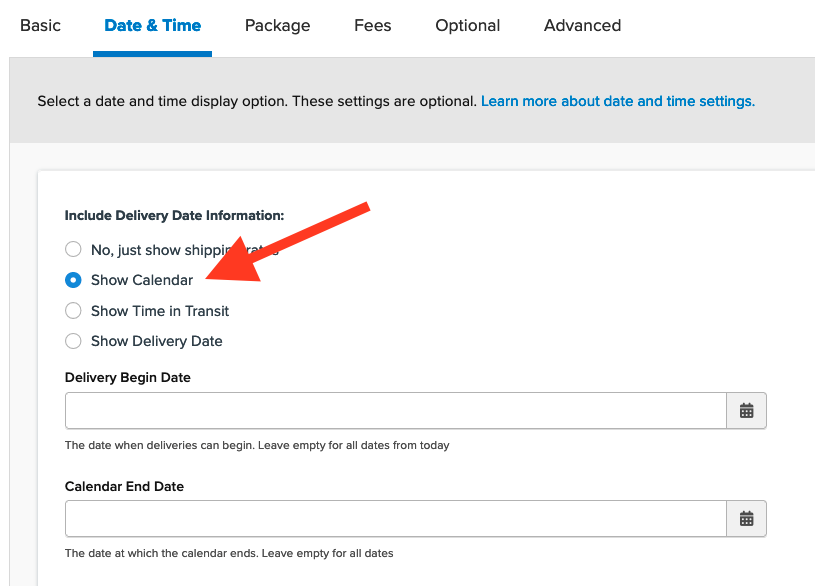 To use the Enhanced Checkout calendar feature, ensure the Delivery Date & Time feature is enabled, and activate the Calendar on each carrier where customers should choose their delivery date.