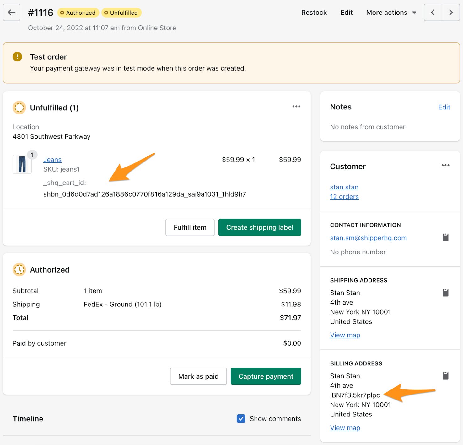 In addition to visual presentation, ShipperHQ Enhanced Checkout stores key details in a Shopify order metafield (shq._shipping_insights) for orders with chosen delivery dates or store pickup. This data can be useful for ERP or fulfillment software integration.