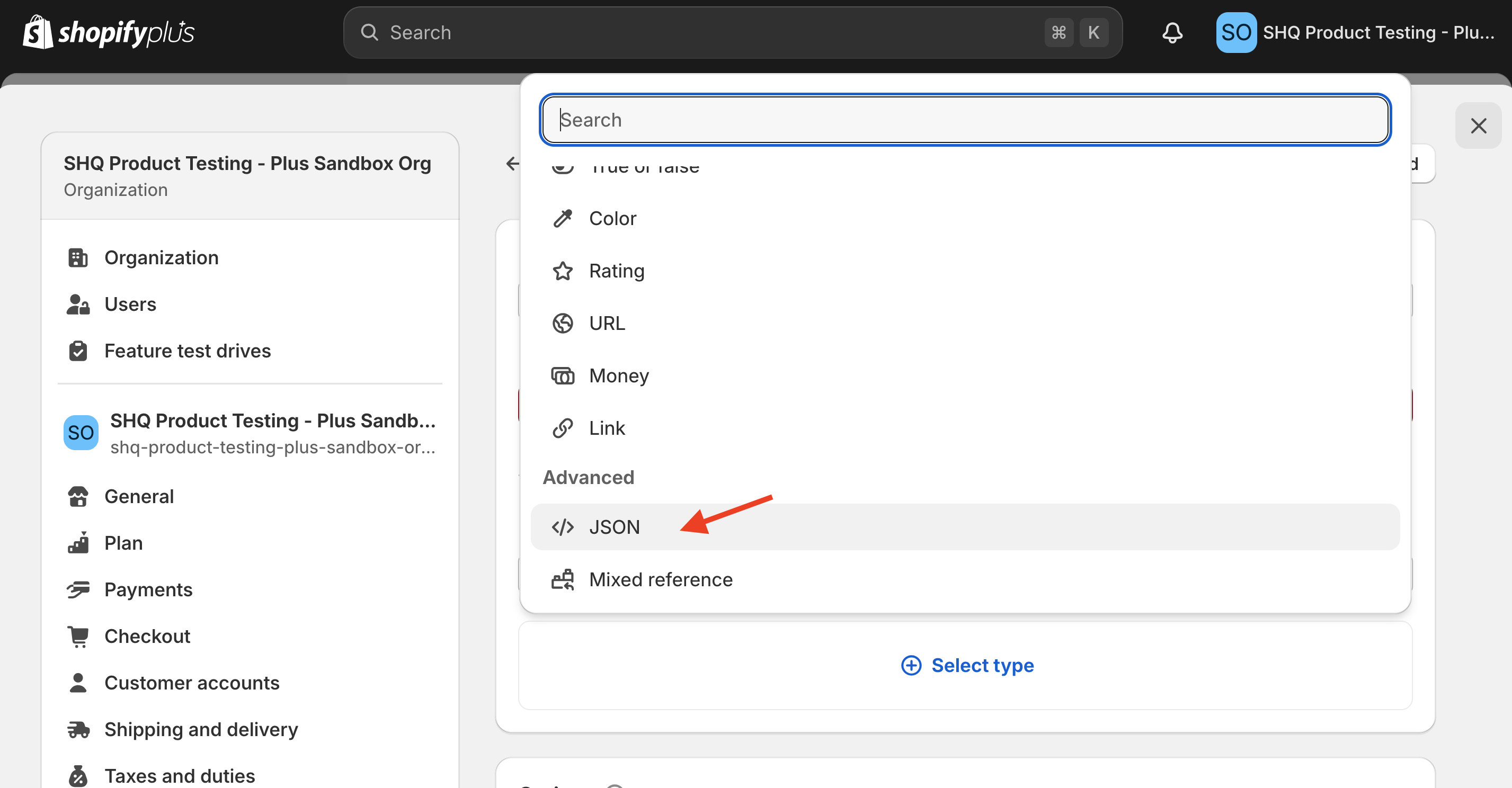 💡 To show data, create a Metafield Definition under Shopify's Settings > Metafields and metaobjects > Orders. Click "View unstructured metafields" and "Add definition" next to shq._shipping_insights. Set Type to JSON.