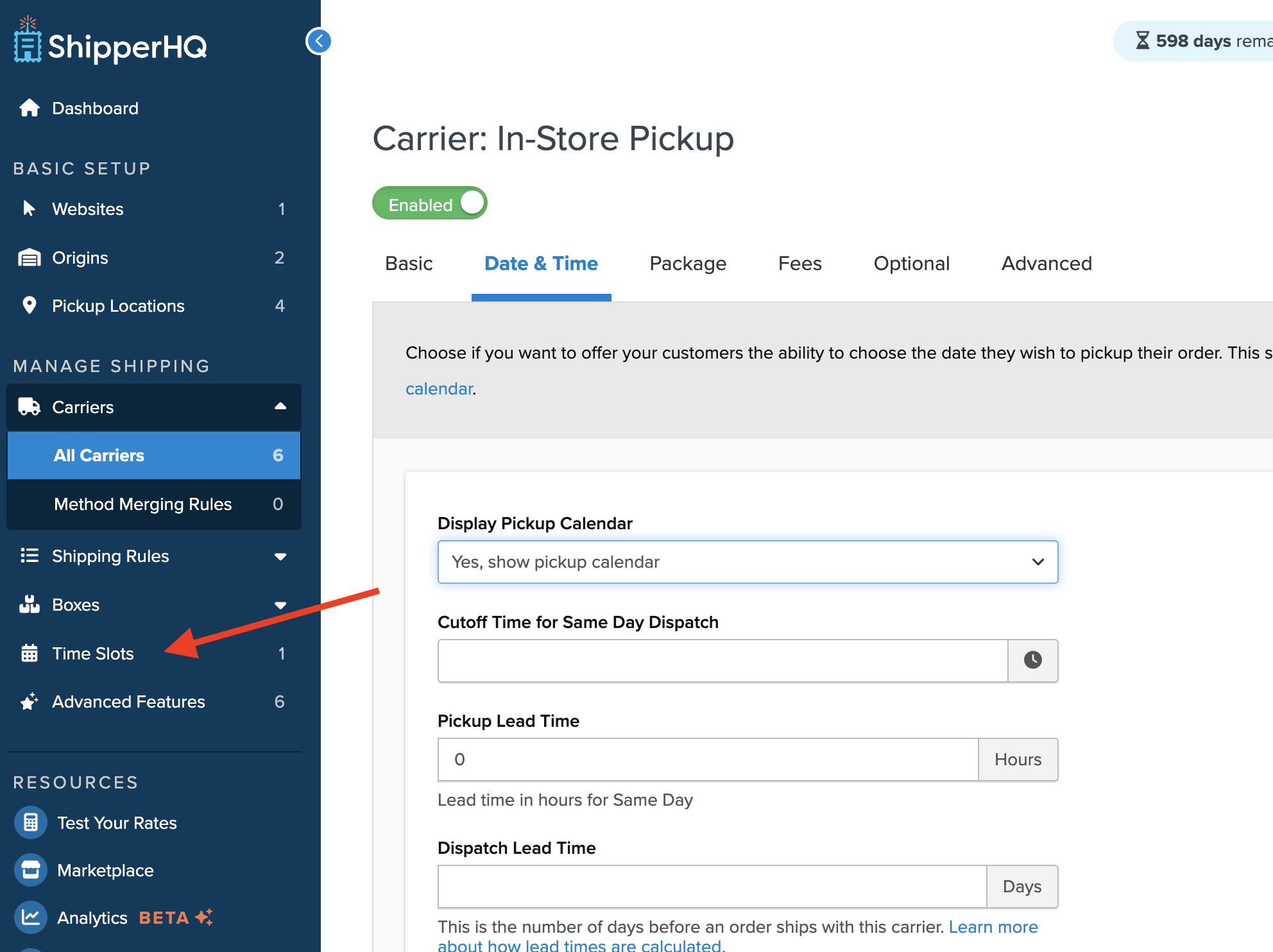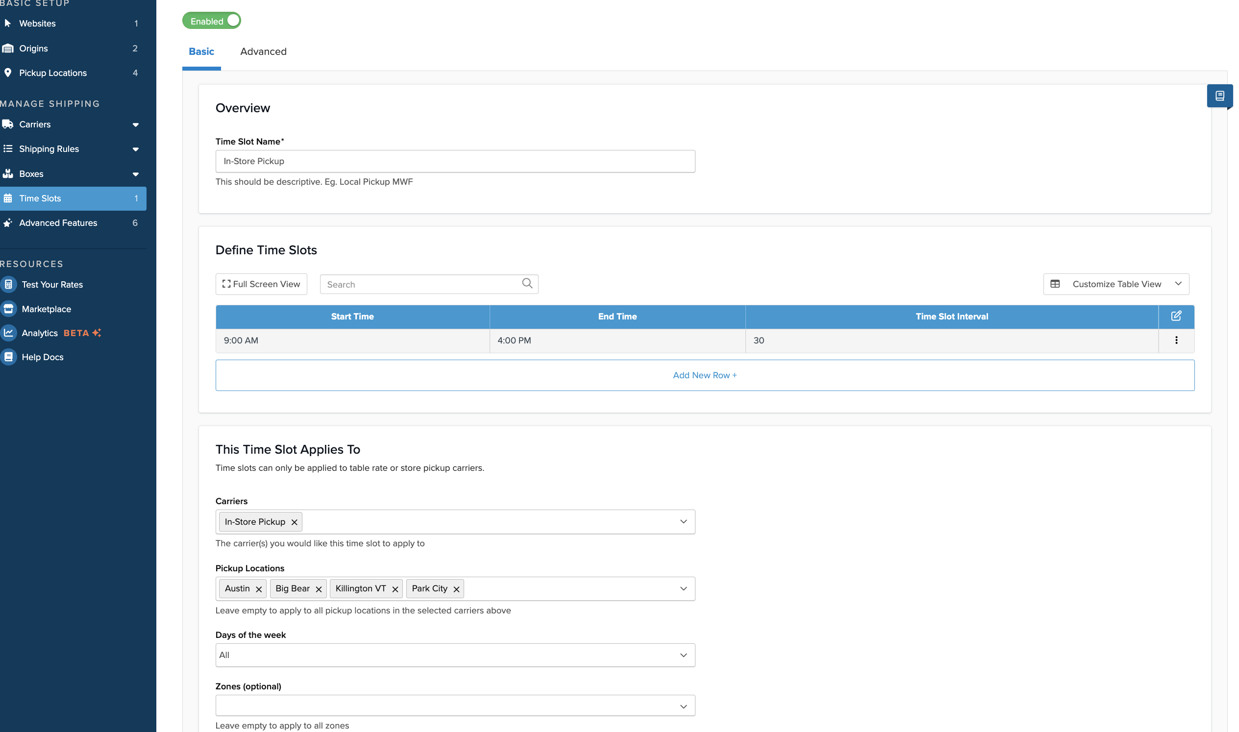Beyond carrier-level In-store Pickup settings, scheduling pickup time slots is another optional but handy feature.