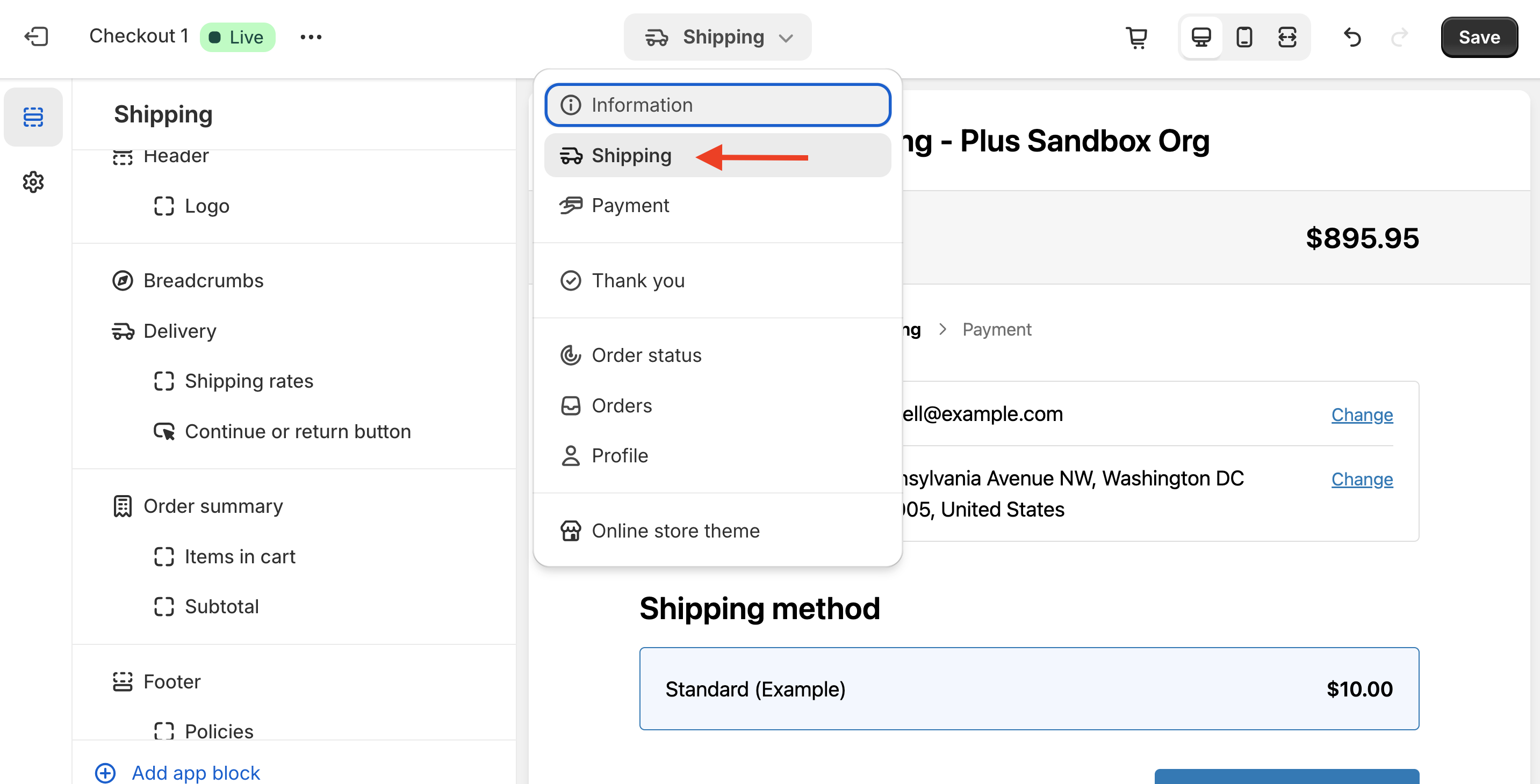 - Save your Checkout customization in Shopify.