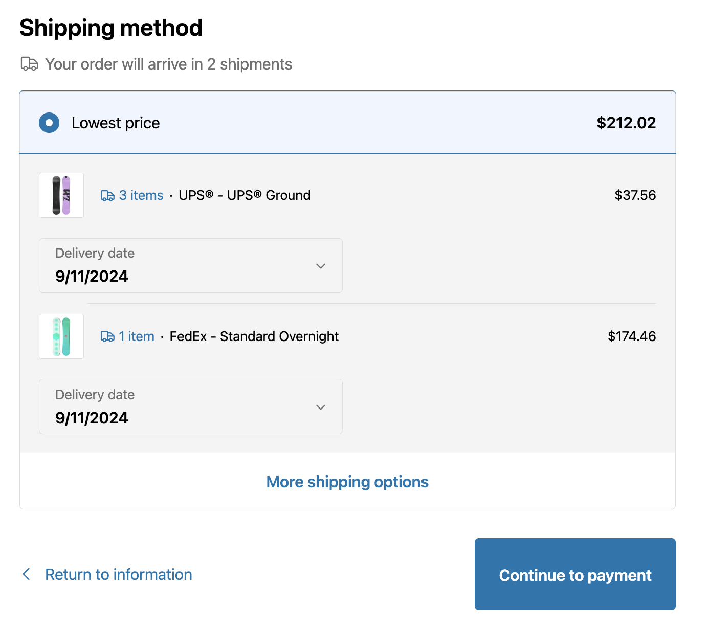- Show delivery dates for each shipping method
