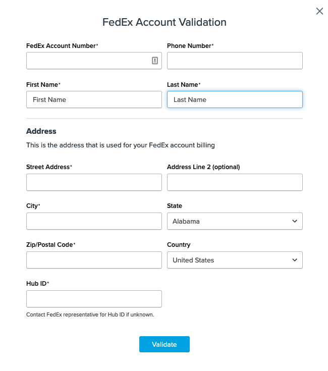 - Input Account Details: Provide the required account information furnished by FedEx in the respective fields.