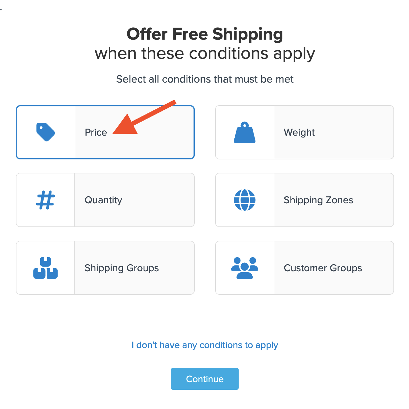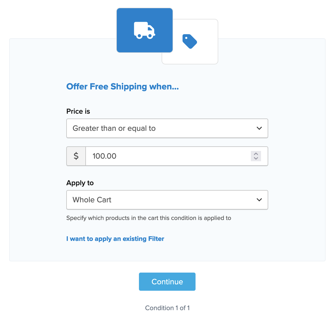 - Choose the price you want to use for offering free shipping. We'll use $100. There are several ways to apply this: