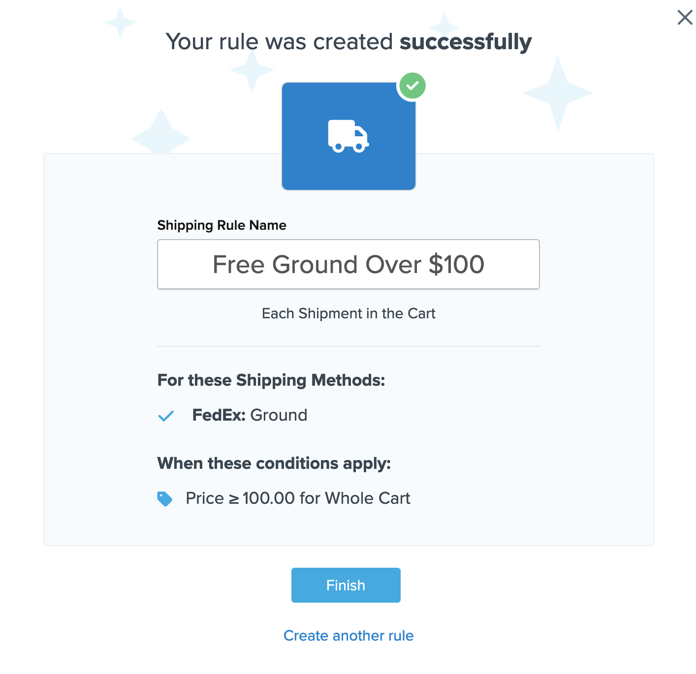 Once completed, ShipperHQ will apply free UPS Ground shipping whenever the order value exceeds $100. Happy shipping!