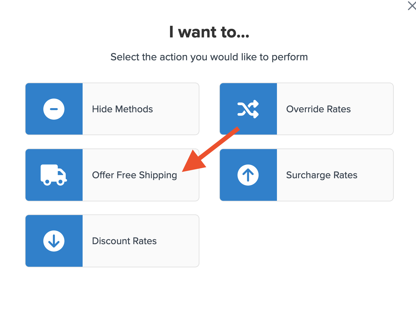 - Select the type of rule to be created. For this example, Free Shipping will be used to offer Ground shipping at $0 for the "Wholesale" customer group.