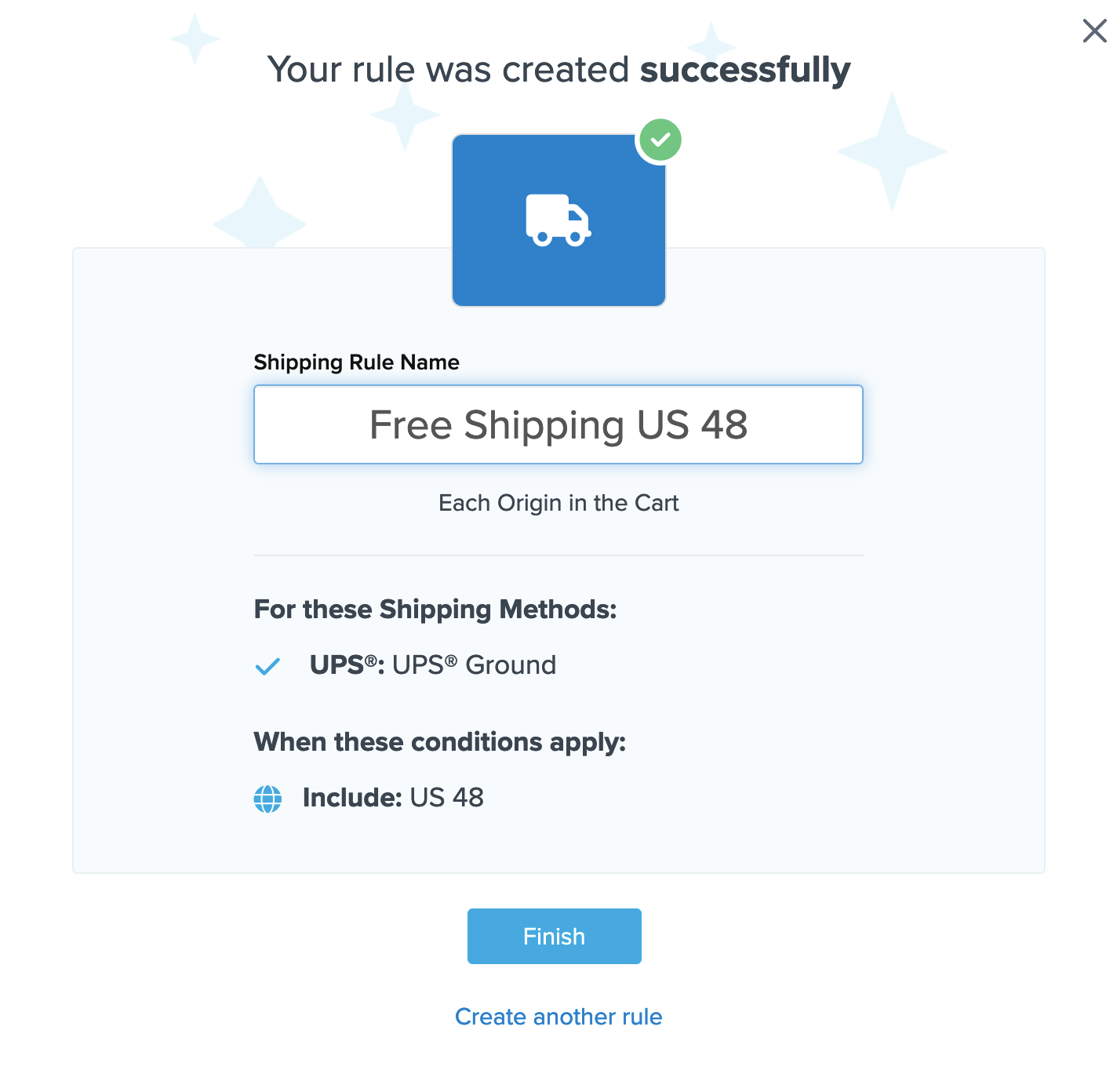 Once completed, ShipperHQ will apply free shipping as defined in this rule for UPS Ground whenever a checkout address falls within the US 48 shipping zone.