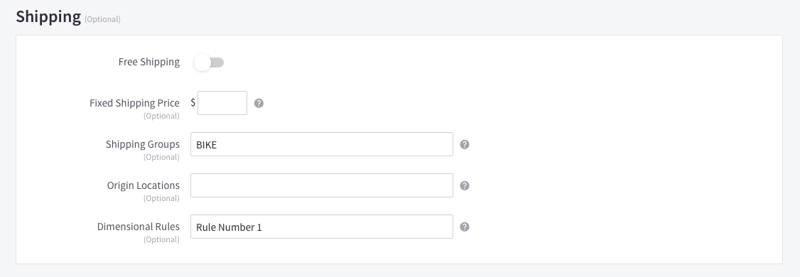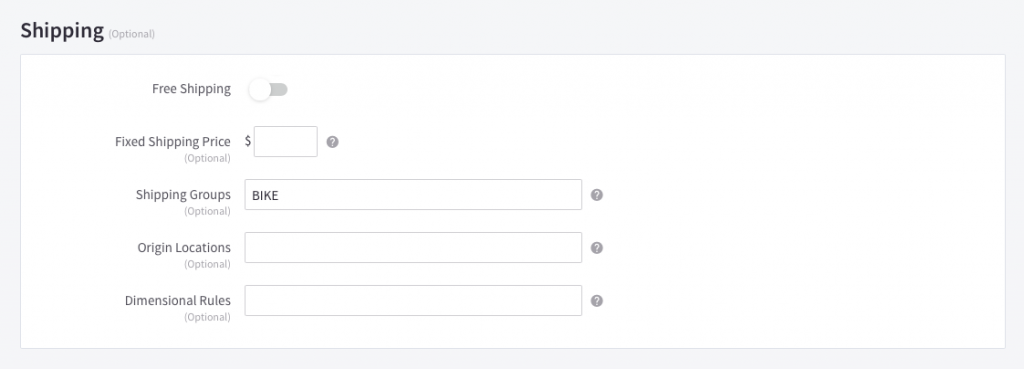 - Find the shipping-related fields in the "Shipping" section of your product details.