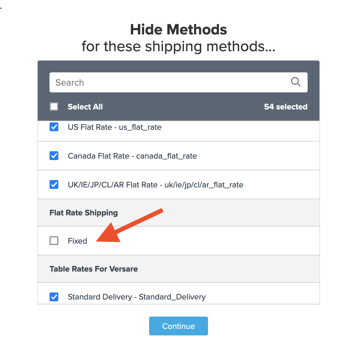 - Select all methods except Flat Rate, so only the fixed rate is displayed.