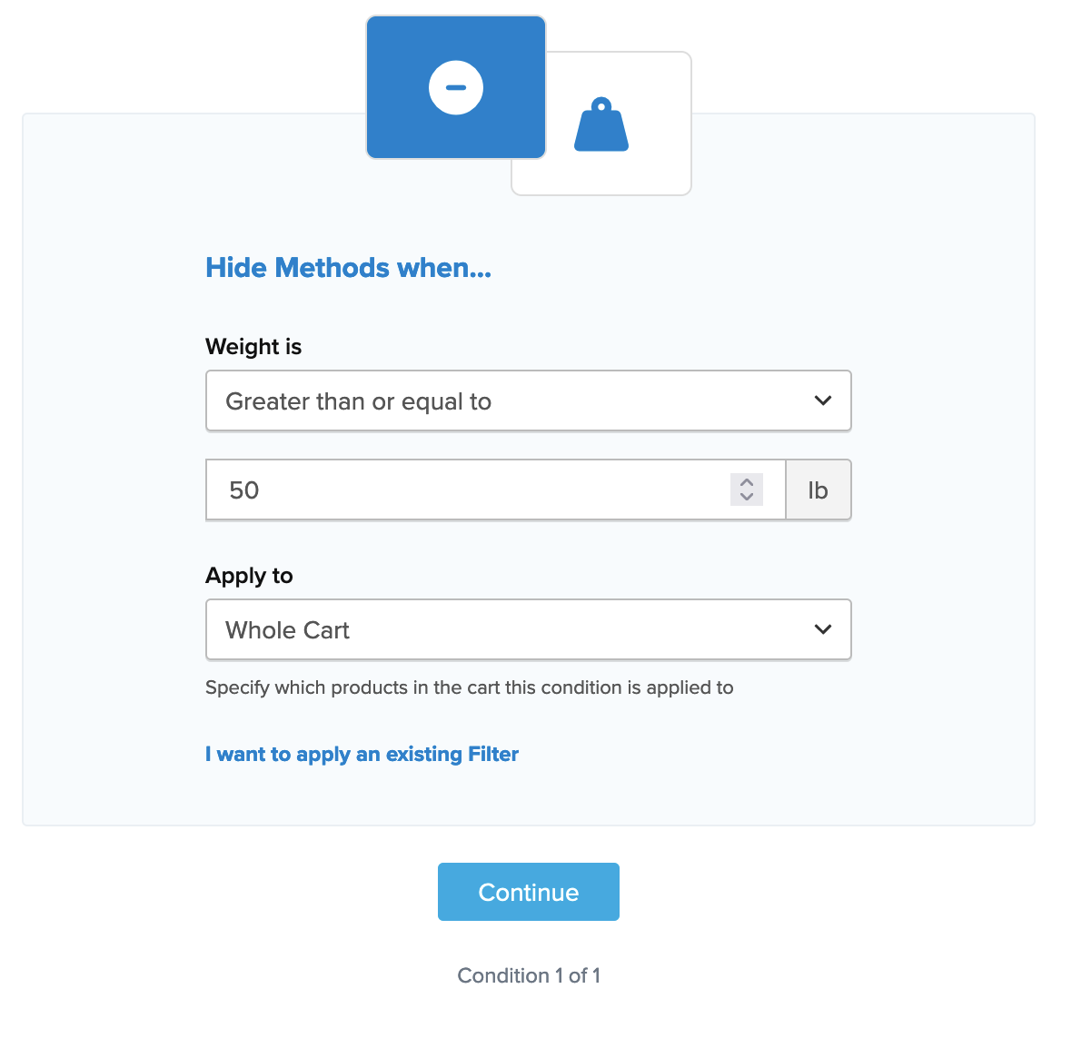 - Enter the weight for your rule. If you haven't created a weight filter, do so now. Select Apply an Existing Filter if a suitable weight filter already exists.