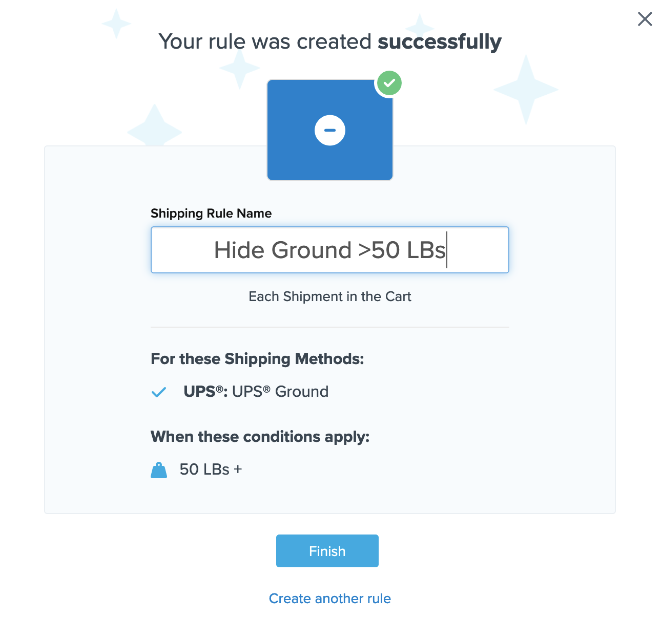 After completing this rule, UPS Ground will not provide shipping rates for orders over 50 LBs. Similar rules can be made using price and quantity filters. Explore our full guide on creating filters within ShipperHQ here for more details.