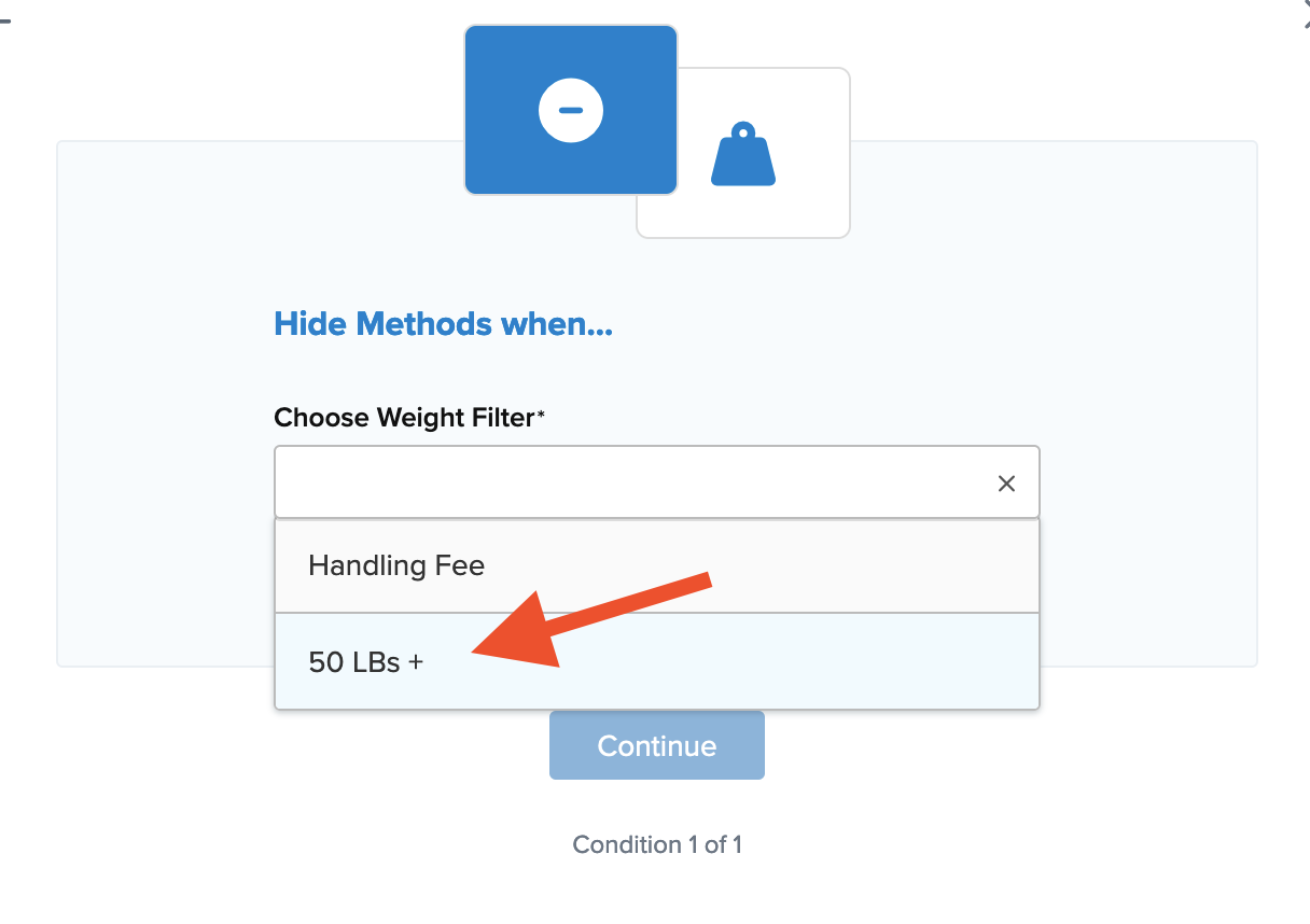 Hide shipping methods based on weight, price, or item quantity criteria in ShipperHQ