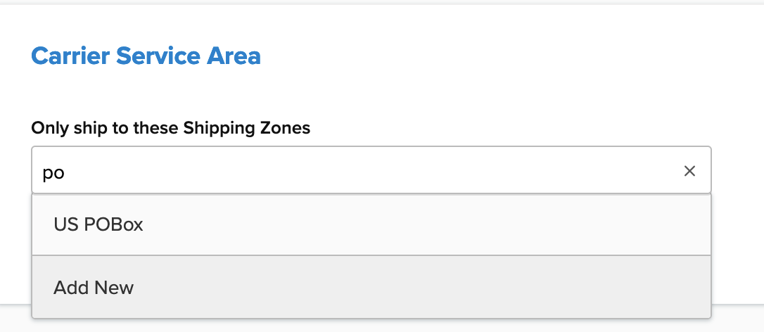 - If you'd like to offer USPS shipping for PO Boxes only, configure this directly with USPS. Navigate to USPS and scroll to the Carrier Service Area section, then select US PO Box