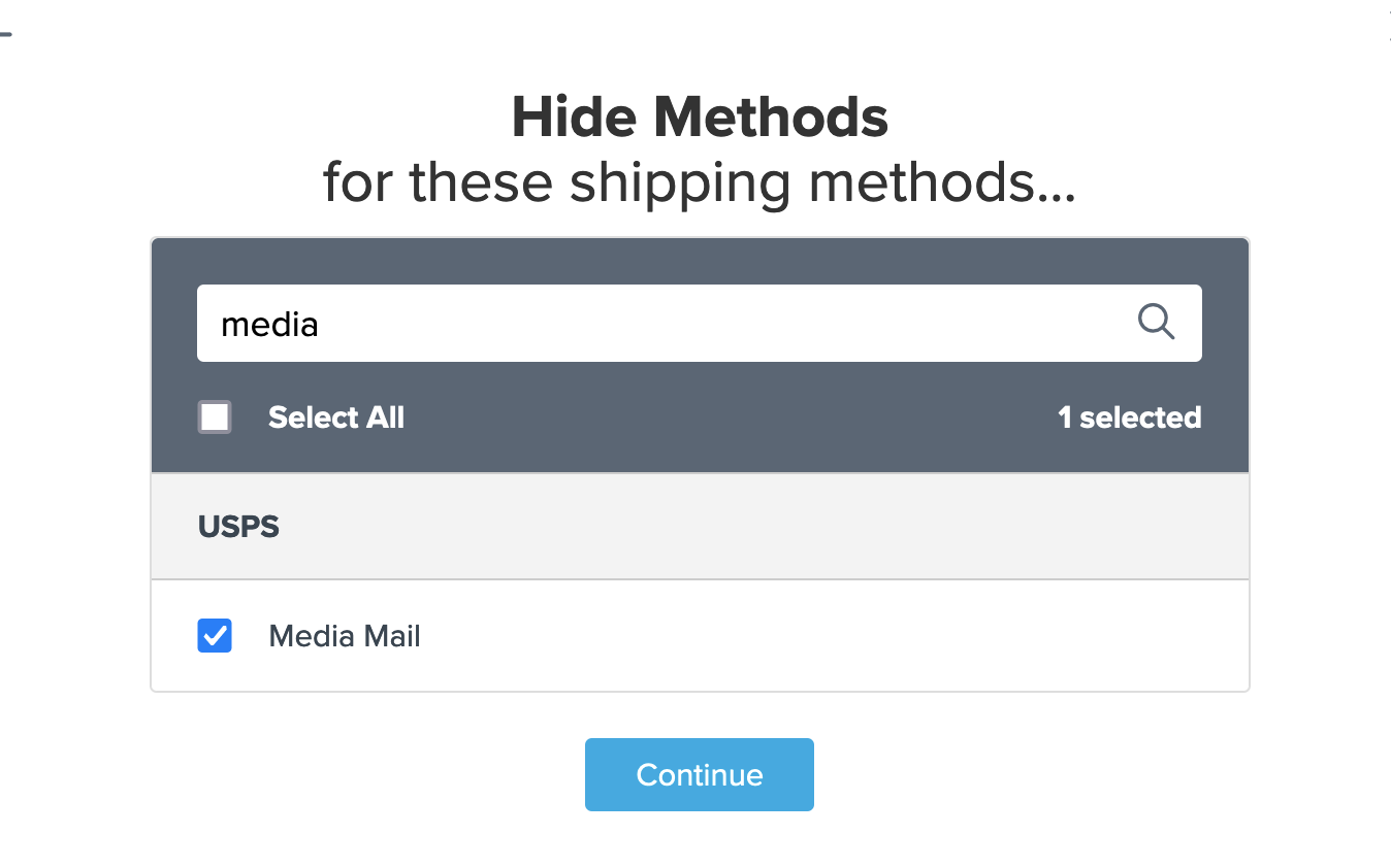 - Use the search field to locate Media Mail, select it, and click Continue.