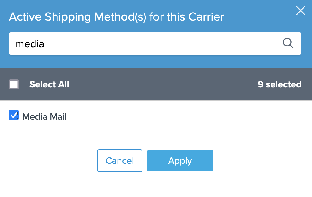 - Search for Media Mail, check the box, and click Apply.