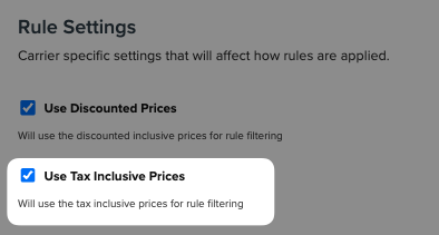 The setting you configure applies to all price-based filters and rules within that carrier's configuration, including: