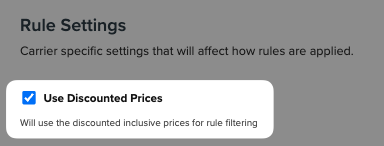 When you enable discounted prices, ShipperHQ will use the discounted price when evaluating any price-based rules for that carrier.