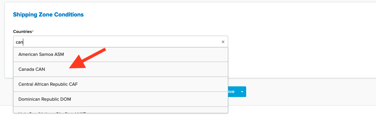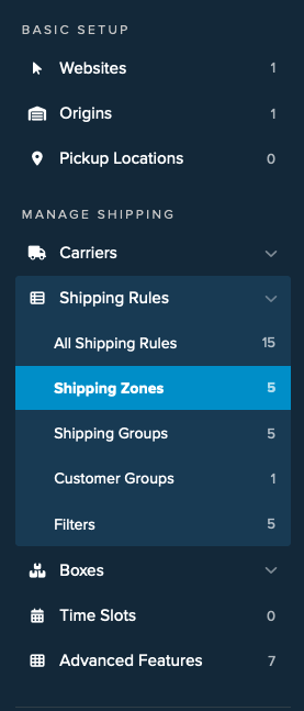 - Save the Shipping Zone. Once completed, you can use this Shipping Zone to restrict carriers, assign shipping groups, and apply it to any Shipping Rules you wish to use.