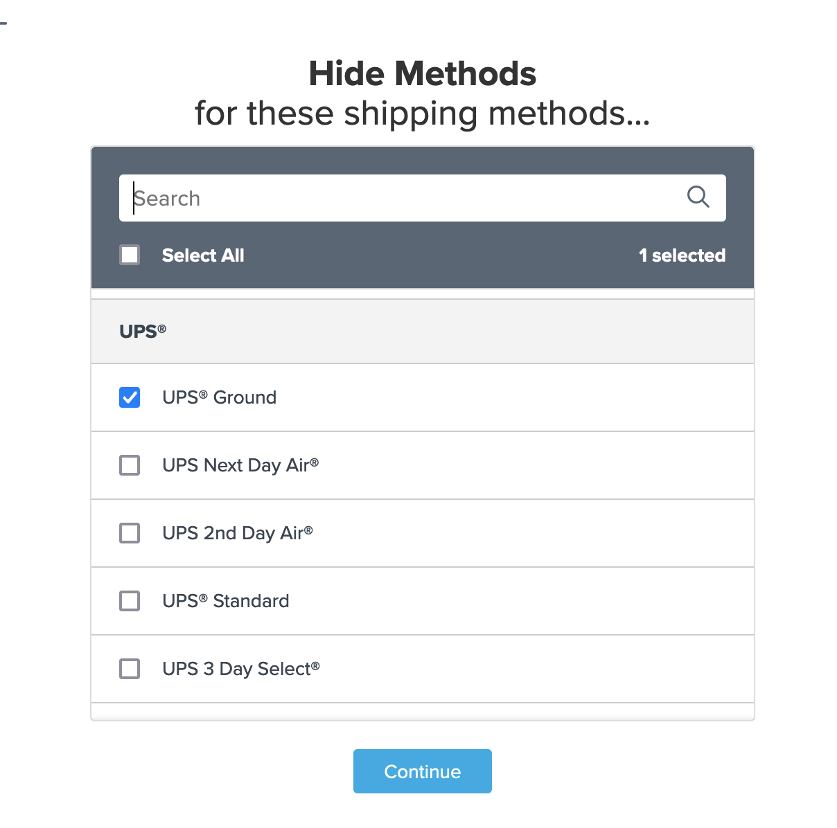 - Choose the shipping methods to apply this hide rule to from the available options.