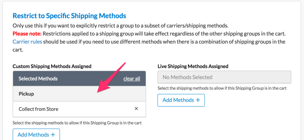 - Locate the Restrict to Specific Shipping Methods section.