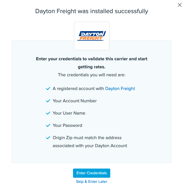- Your Dayton Freight carrier is now enabled and ready to use for quoting shipping rates.